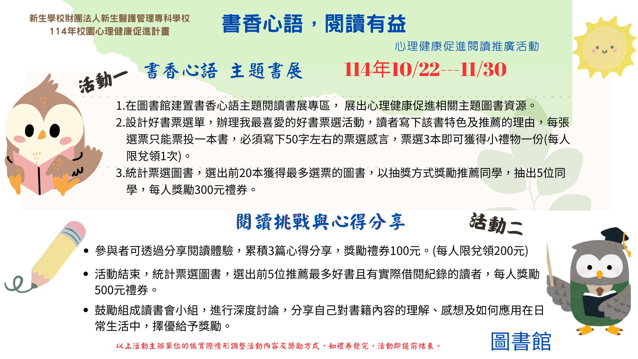 【活動】書香心語,閱讀有益-心理健康促進閱讀推廣活動