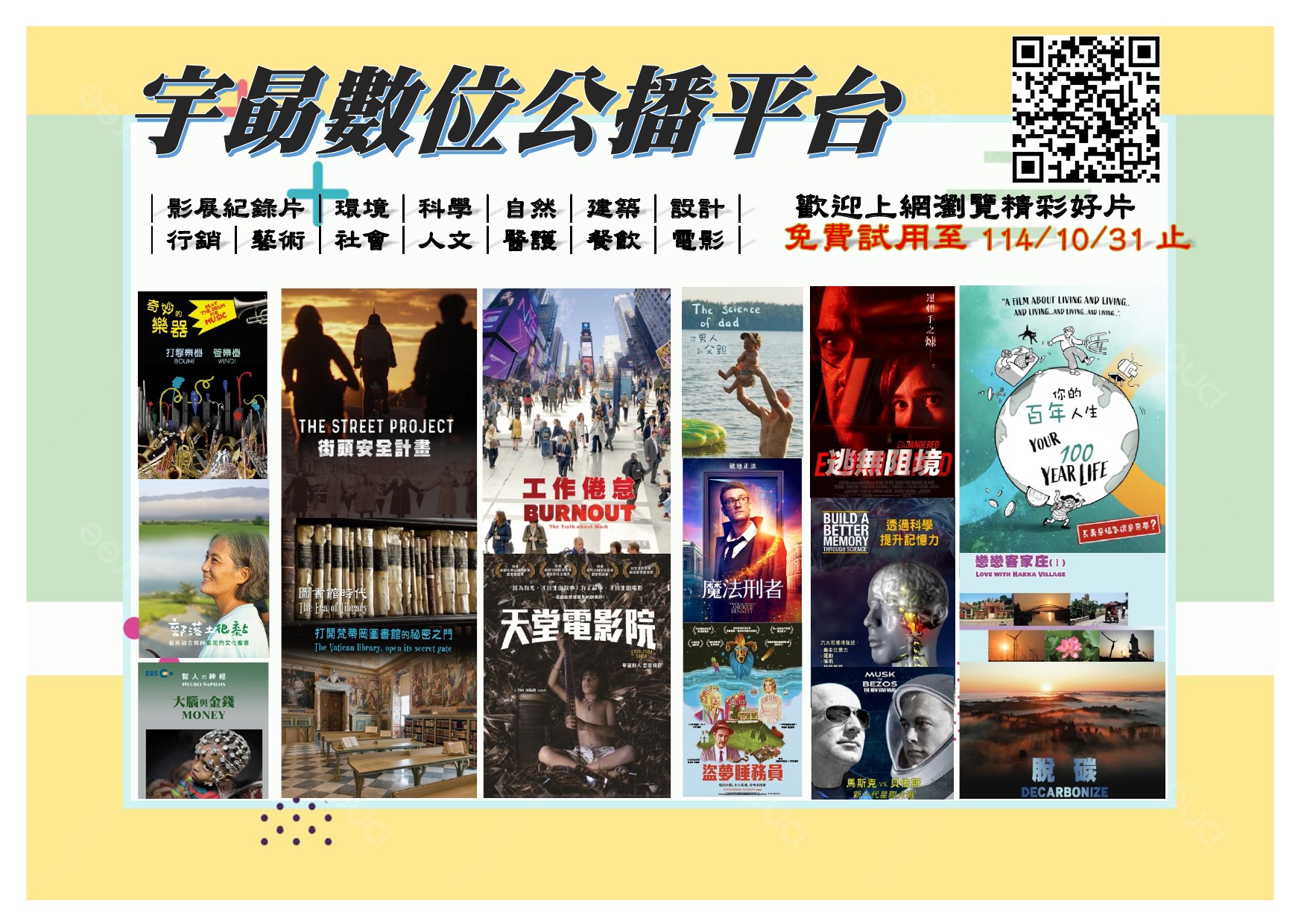 【宇勗數位公播平台】是一個專業的知識休閒節目平台,符合永續發展目標(SDGs 目標),精選跨領域知識教育與全球影展電影之數位影音,提供合法的數位公開播映版權,並支援HD高畫質串流,畫面清晰流暢。