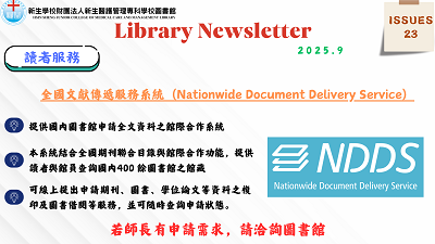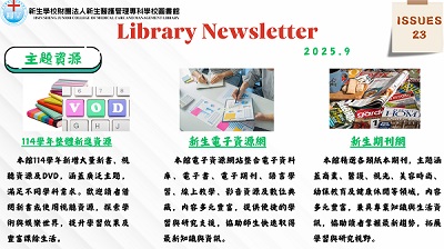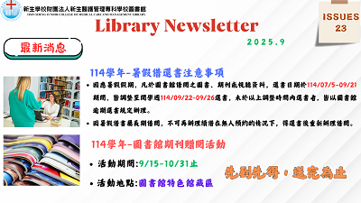 新生圖書館第22期電子報 | 新生圖書館第23期電子報 | 新生圖書館第24期電子報 |